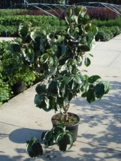 De Amerikaanse Kornoelje groeit in de beginjaren de hoogte in, later wordt hij rond.