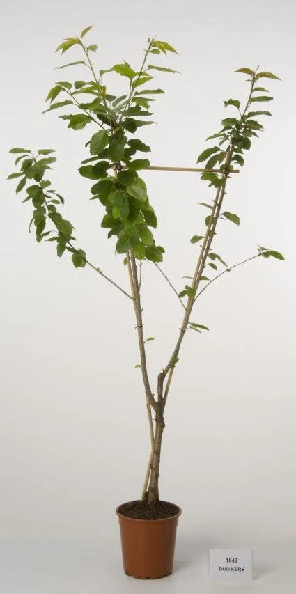 Prunus avium (kersenboom) 2 soorten op 1 stam: Hedelfinger en Dubbele Meikers.