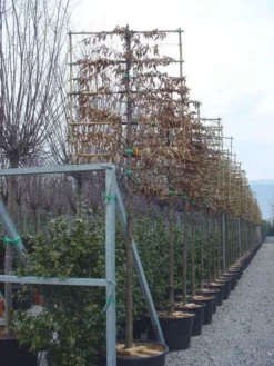 Carpinus betulus, de haagbeuk gekweekt als leiboom.