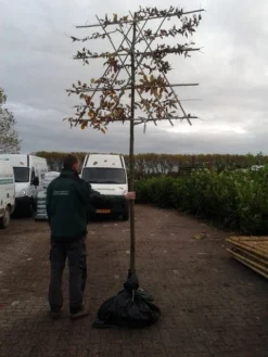 De leibomen met een stamdikte van 10-12cm, begint de leivorm op een hoogte van circa 180cm.