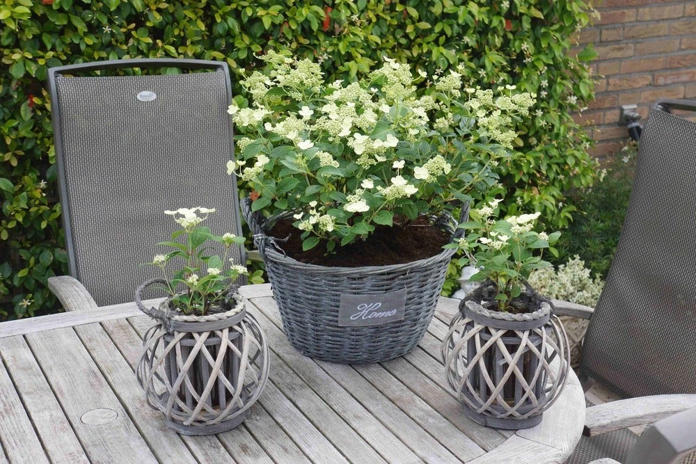 Hortensia (Hydrangea ‘Prim White’) is een schermbloemige Hortensia met witte bloemen. Deze Hortensia is goed te gebruiken als pot plant, en kan dus ook goed voor de kleinere tuin gebruikt worden. U snoeit deze Hortensia direct na de bloei. Hydrangea paniculata Prim White is een zeer vroeg bloeiende pluimhortensia. De rijke bloei begint eind mei/begin juni. Onder ideale weersomstandigheden bloeit Prim ‘White® een tweede keer in september. De bloem verkleurt gedurende het hele jaar hij begint crèmekleurig en kleurt door naar wit. Plaats de Prim’White® op een plaats in de zon/halfschaduw voor optimale groei en bloei. Hij is ideaal als tuin- en terrasplant. Kies de Hortensia Prim’White® vanwege de compactheid en zeer vroege bloei. Snoei de Prim’White® niet eerder dan na de bloei terug . Haal de dode bloemen weg en snoei flink terug om de compactheid te behouden. Hortensia Prim’White® is een parel voor iedere tuin!