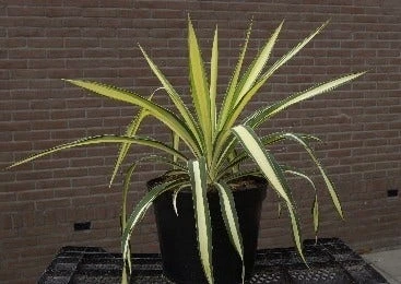 Yucca flaccida ‘Golden Sword’ heeft een gele streep op het blad.