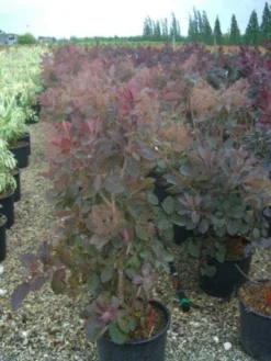 Cotinus ‘Grace’ is een nieuwe varieteit met grotere bloemen dan Cotinus ‘Royal Purple’