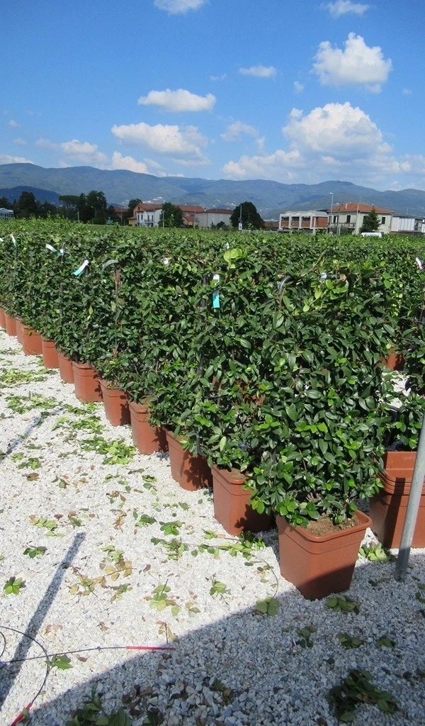 Trachelospernum jasminoides (Sterjasmijn) gekweekt als leivorm.